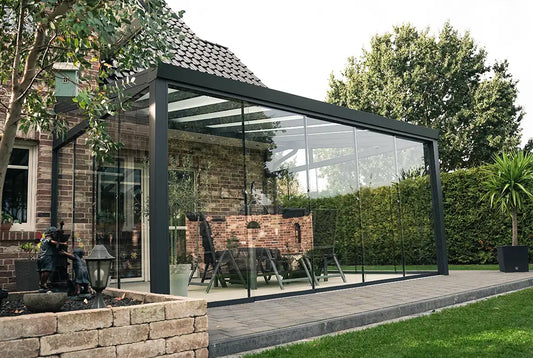 Mit über 70 Mitarbeitenden liefern wir jährlich mehr als 1.500 Überdachungen, 1.000 Sonnenschutzanlagen und über 60.000 m² VSG.