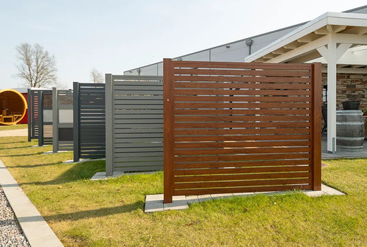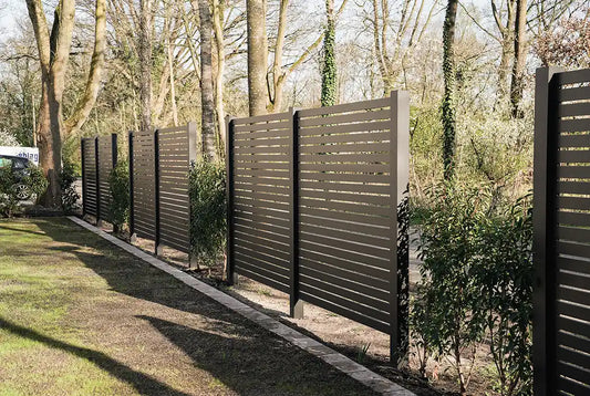 Unsere Lamellenzäune aus pflegeleichtem Aluminium sind in 90 cm und 180 cm erhältlich. Der Zaun ist in fünf verschiedenen Höhen konfigurierbar und lassen sich perfekt miteinander kombinieren.