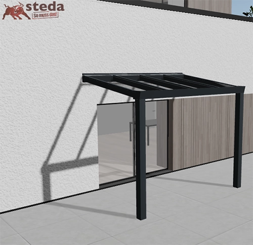steda-Überdachungen bestehen aus 100% pulverbeschichtetem Aluminium.