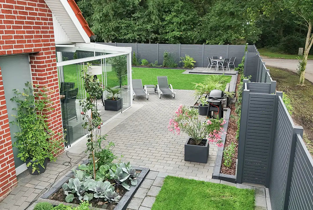Bei der Montage einfach die Pfosten setzen, Rhombuslamellen einhängen und schon steht dein neuer Zaun.