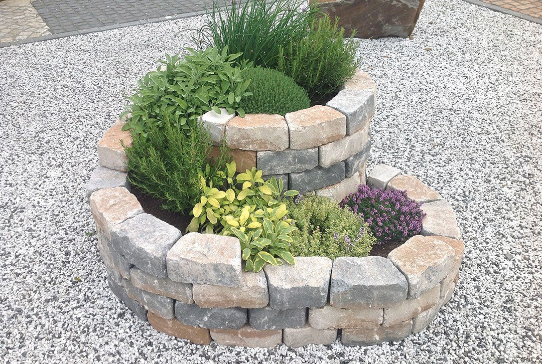 Tolle Kräuterspirale für einen schnellen und kinderleichten Aufbau. Verwendet werden getrommelte Mauersteine mit unterschiedlicher Oberflächenstruktur. Die Abmessungen betragen ca. 120 x 140 x 60 cm (Außenmaß)