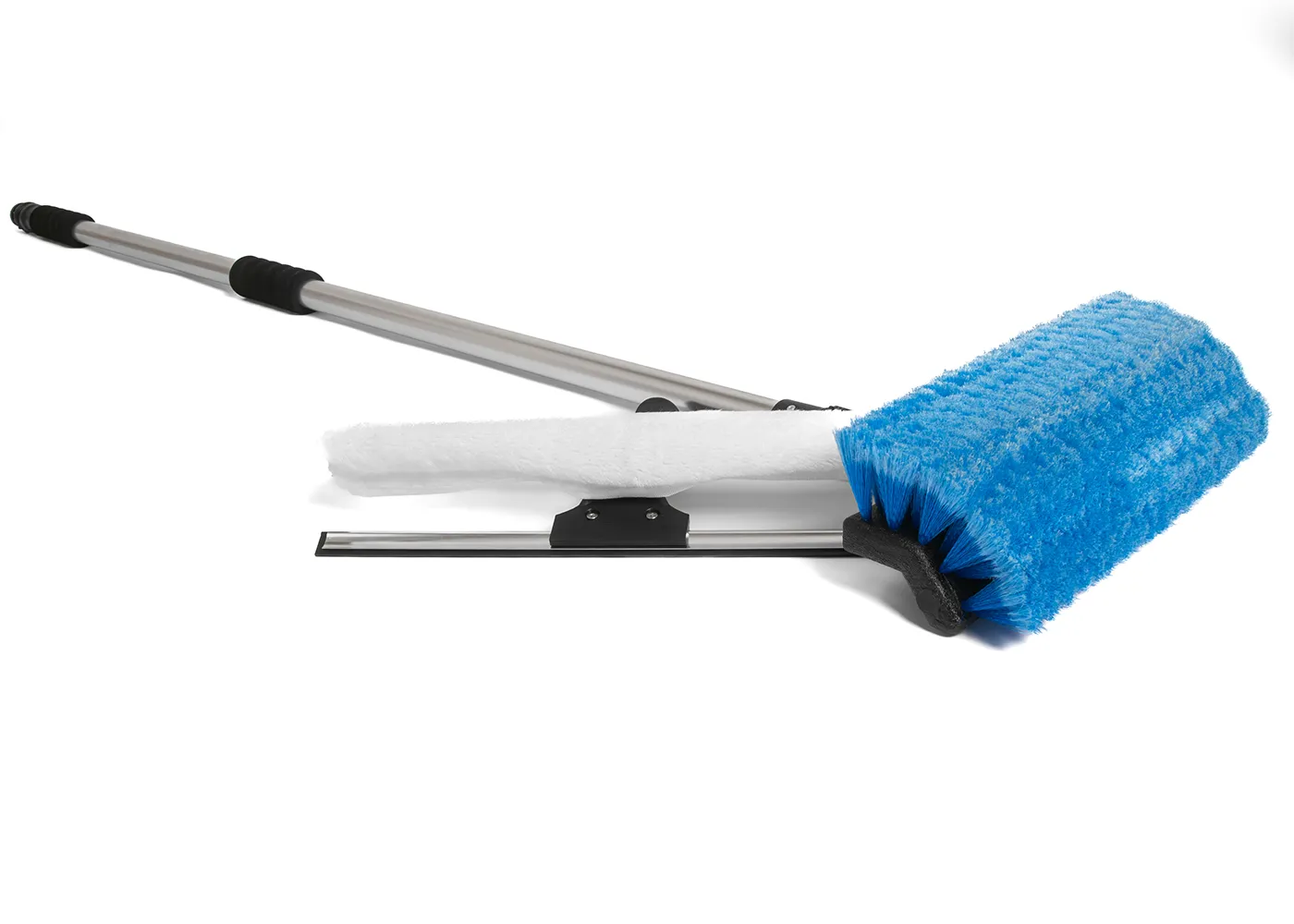 Unsere Waschbürste kombiniert Wischer und Einwascher, was dir eine Zeitersparnis von 20 % ermöglicht. Die vorne am Stiel angebrachte Bürste besitzt zwei Waschflächen, die in einem Winkel von 30° miteinander verbunden sind. Diese Konstruktion sorgt für eine größere Kontaktfläche und somit für eine schnellere und gründlichere Reinigung.
