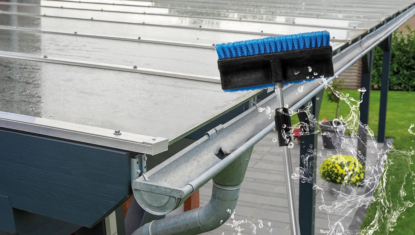 Erlebe die Effizienz und Qualität unserer neuen Waschbürste und mach die Reinigung deiner Terrassendächer schneller und einfacher als je zuvor!