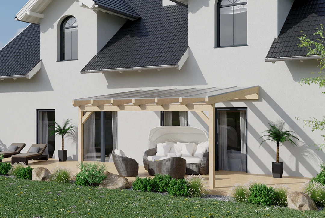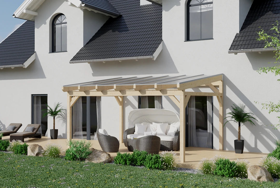 Hergestellt aus robustem Holz, das für seine Langlebigkeit bekannt ist, und in einem stilvollen graphitgrau gehalten, ist diese Überdachung eine attraktive und praktische Lösung für deine Terrasse. Ob für gemütliche Abende im Freien oder als geschützter Bereich für Pflanzen und Möbel – diese Terrassenüberdachung erfüllt alle Anforderungen.