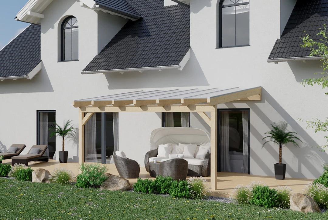 Bei dieser Terrassenüberdachung handelt es sich um die Abbund Variante, das heißt einfaches zusammenbauen der Terrassenüberdachung durch fix und fertig abgebundene Teile und du erhältst eine 3D-Zeichnung mit passendem Fundamentplan. Abbund Variante, das heißt du erhältst eine 3D-Zeichnung mit passendem Fundamentplan.