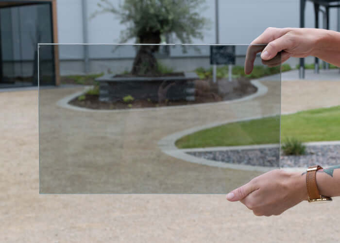 Bei der Farbe Klar sind beide Floatscheiben (je 5mm stark) und die doppelte Folie (0,76mm) klar, bei weiteren Färbungen ist einer beiden Scheiben entsprechend getönt.
